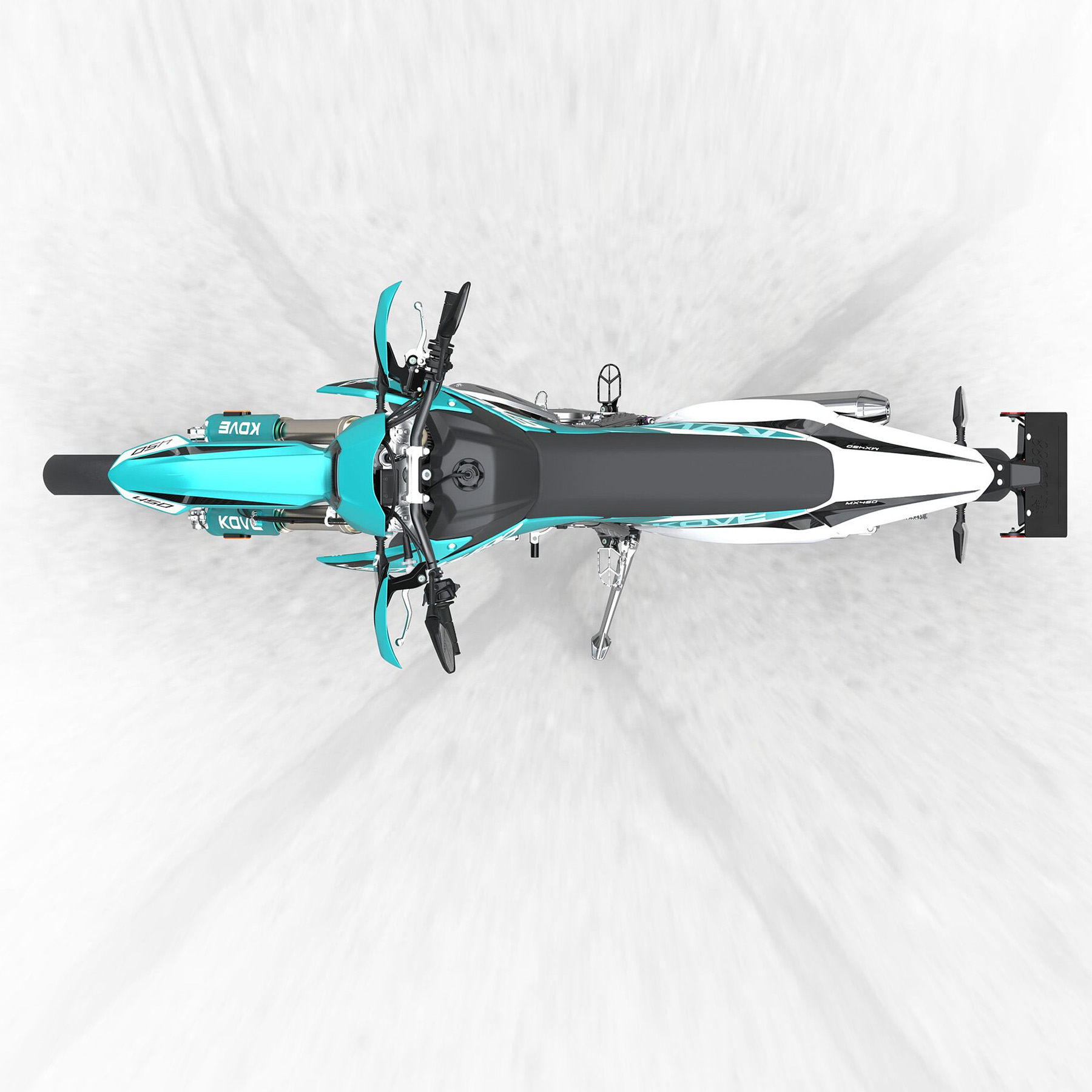 Das Chassis der KOVE MX450 Enduro basiert auf einem hochfesten Stahl-Doppelschleifenrahmen mit Aluminium-Heckrahmen. Laut Hersteller wurde besonderer Wert auf Stabilität und Feedback gelegt. Mit einem Gewicht von nur 120 Kilogramm fahrbereit und 285 Millimeter Bodenfreiheit soll die MX450 Enduro ideal für anspruchsvolles Gelände geeignet sein. Die voll einstellbaren Federelemente von Yu An - vorne eine 310 mm USD-Gabel, hinten ein Federbein mit 290 mm Federweg und externem Luftpolster - erlauben es, Vorspannung, Druck- und Zugstufe individuell abzustimmen und bieten einen Federweg von 310 mm vorne und 290 mm hinten.
